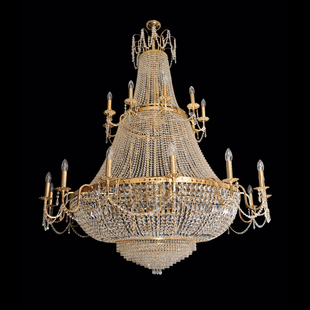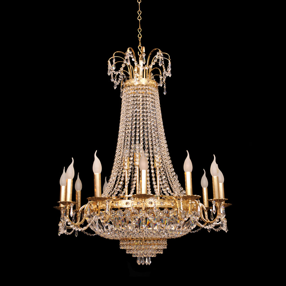 E10034Disponemos de una amplia gama de artículos, todos realizados con cristal SWAROVSKI y bañados en oro 24k, desde Arañas que siguen la mejor tradición clásica, hasta artículos contemporáneos altamente imaginativos que representan la vanguardia del diseño moderno, creatividad y la pericia de producción y labor artesanal.